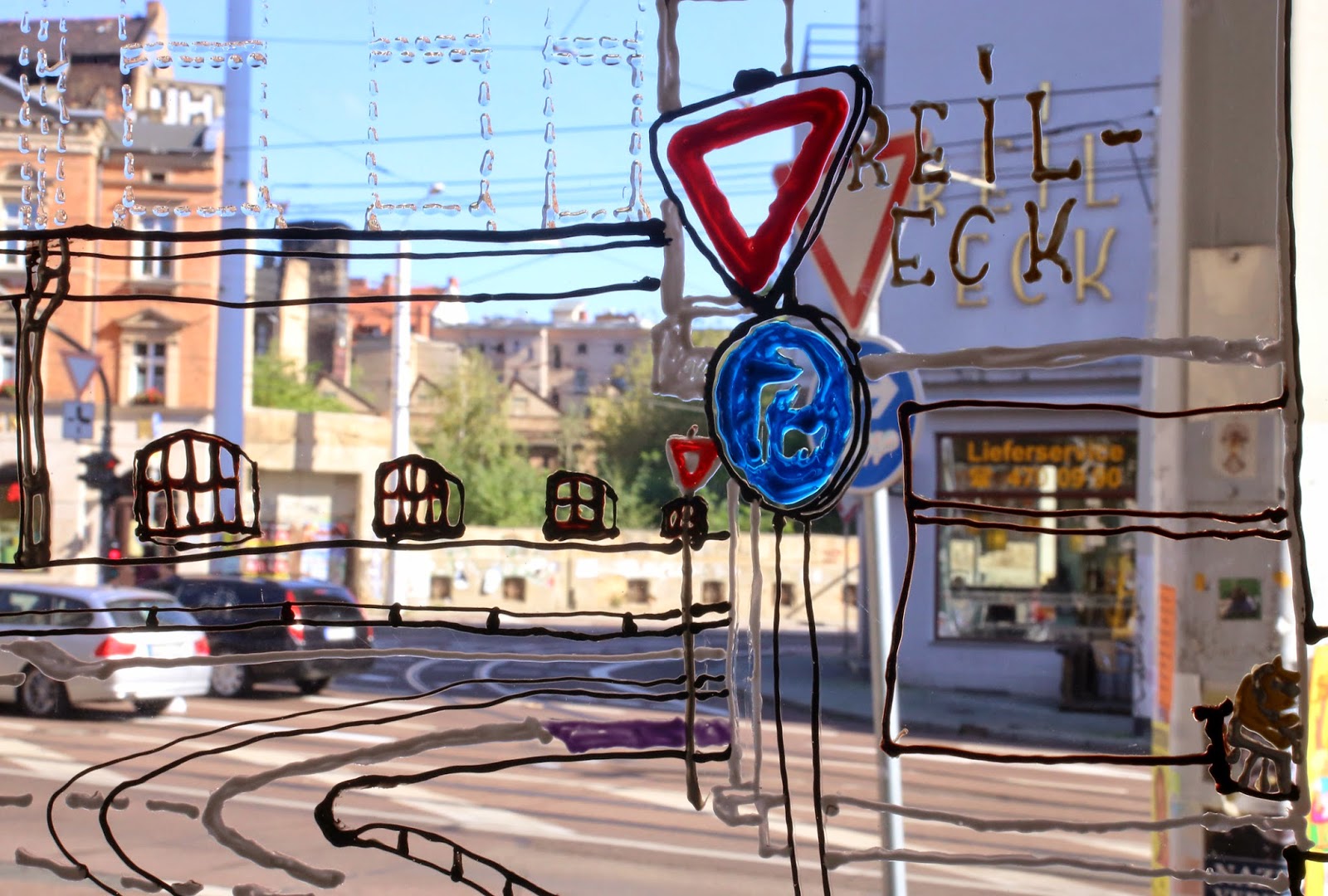 Luise Ritter zeichnet ihr Sehrelief im Kiosk.