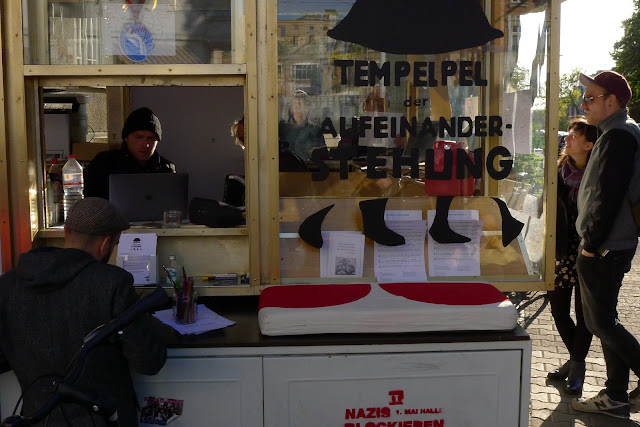 Siehe: Der Tempelpel der Aufeinanderstehung kennt die richtige Ernährung, die richtige Frisur und natürlich die passenden Klamotten. Und deshalb kann sich der Tempelpel hingebungsvoll um die wahren Fragen deines Lebens kümmern. In der Zeit vom 29. April bis 3. Mai kannst du im Kiosk täglich von 15 bis 19 Uhr deine Versatzstücke und Module zu einer nagelneuen Religion zusammenfügen. Komm vorbei: zur Offenbarung oder sowas.